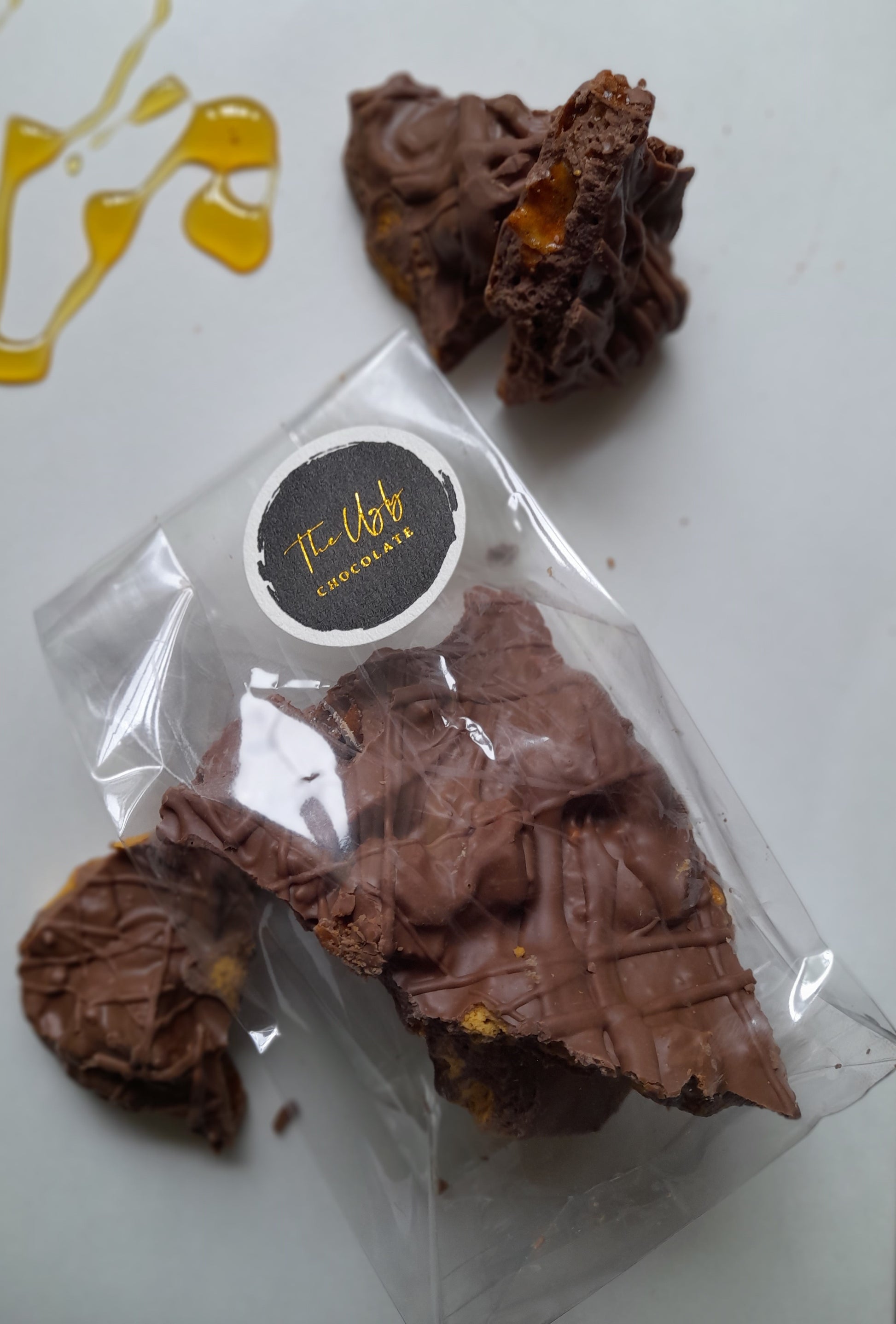 Our Honeycomb Slab 100g combines handmade honeycomb with smooth, high-quality milk chocolate. The added honey imparts a distinctive floral sweetness that complements the creamy texture of the milk chocolate. The balance of crunchy honeycomb and velvety chocolate...just the character of Australian honey in a classic treat!!!